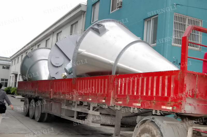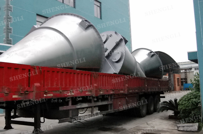 描述:錐形攪拌設備內(nèi)部安裝非對稱傾斜螺旋,雙螺旋自身旋轉(zhuǎn),提升物料,并有公轉(zhuǎn)減速箱驅(qū)動,沿錐體中心軸公轉(zhuǎn),364度攪拌物料,擁有非破壞性攪拌以及快速且無殘留卸料的特點。該設備配置自轉(zhuǎn)、公轉(zhuǎn)分體驅(qū)動,內(nèi)外表面做拉絲處理,配置錐體中軸線噴液噴頭,筒體底部配置氣動球面閥,開設投料口、排氣口等。