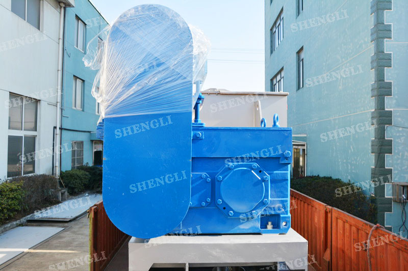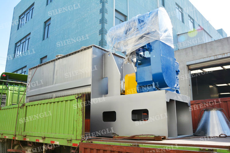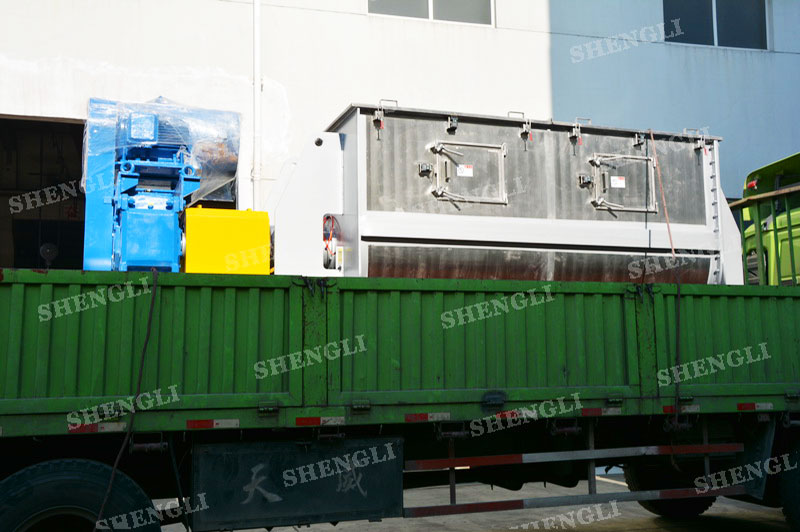 設備配置:加強型設備,高功率、低轉速;筒體中部氣動翻板閥;設備主軸采用填料密封;