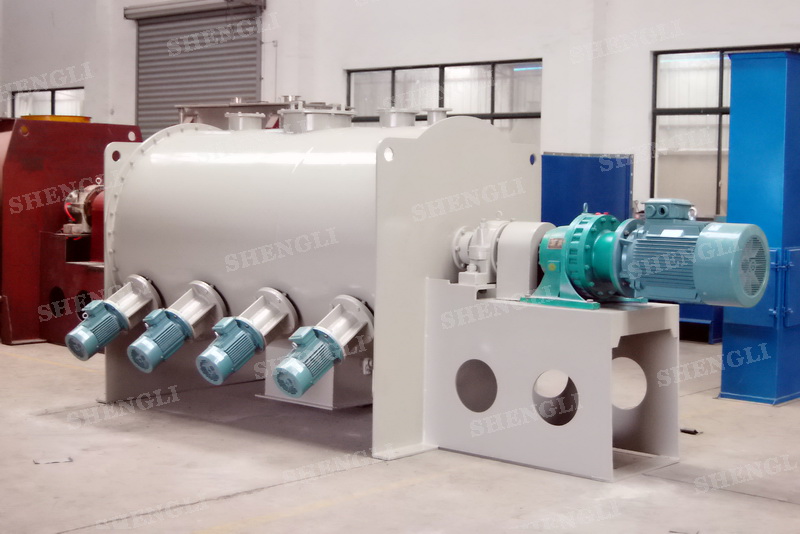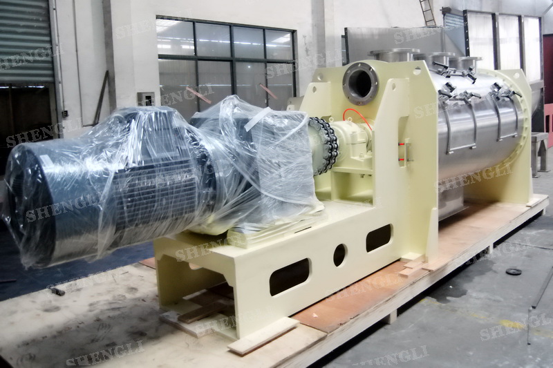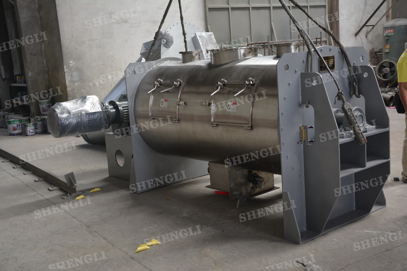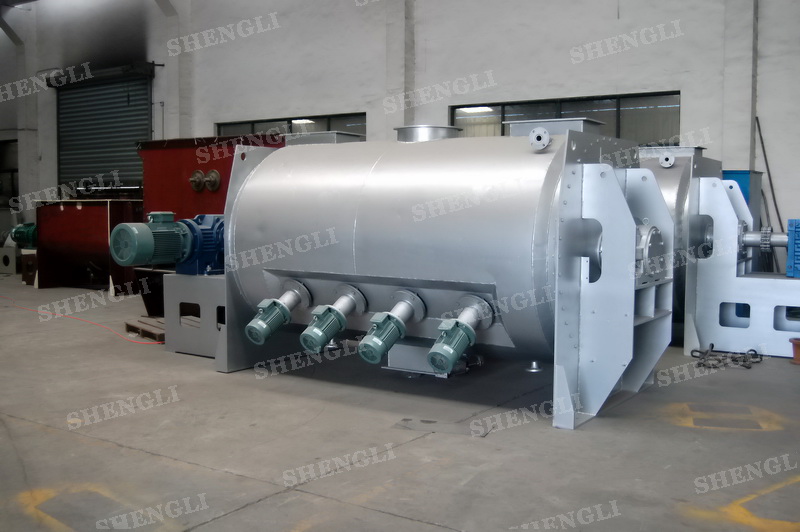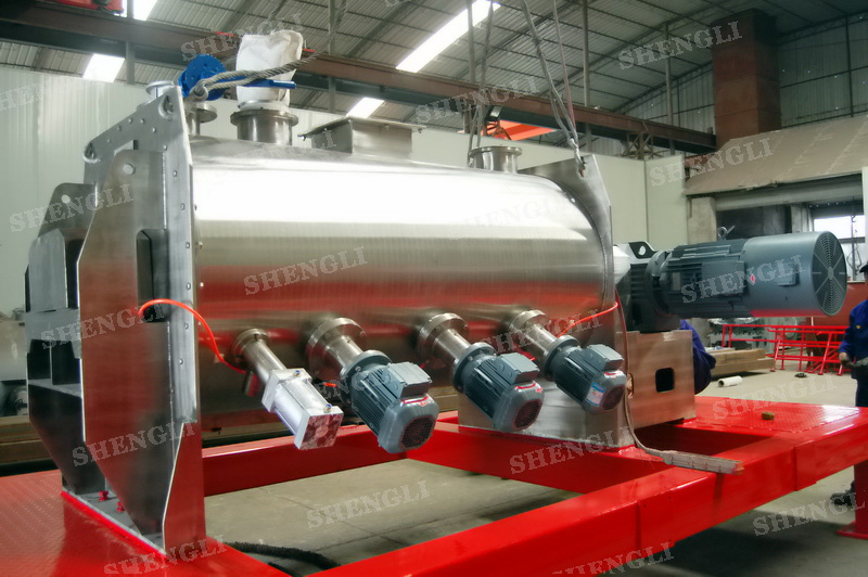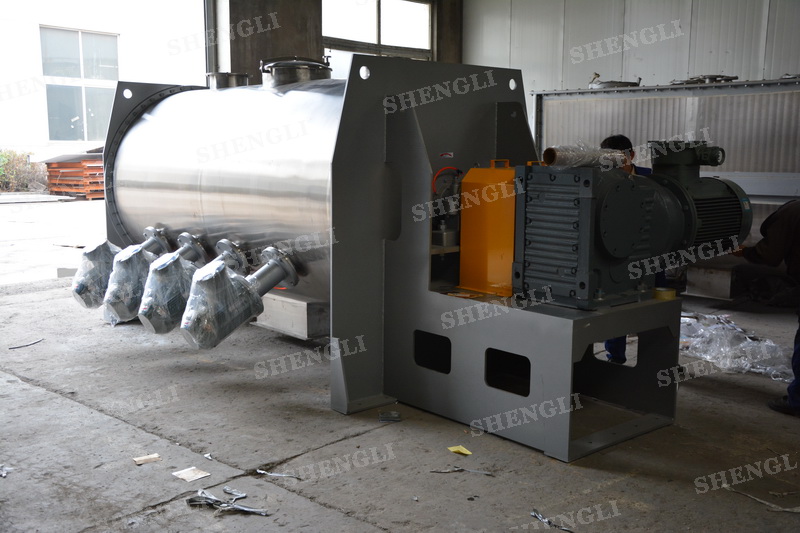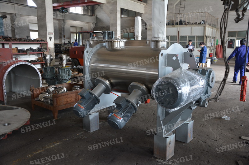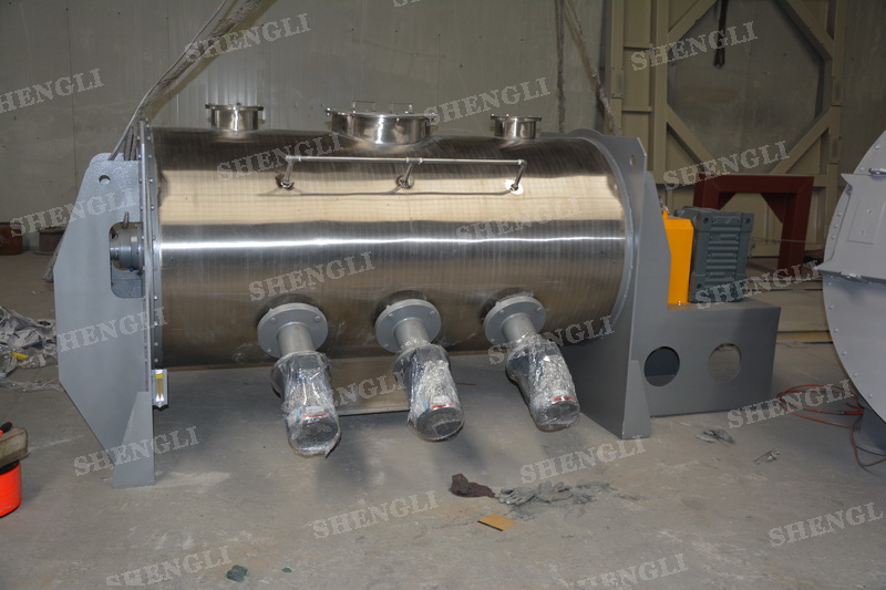 描述:犁刀混合機采用臥式圓柱筒體,內設平行主軸,主軸上安裝若干犁式刀頭,通過較快的旋轉速度,分割、重合物料,實現快速攪拌的功能,常結合1500-3000轉高速剪切飛刀相互作用。