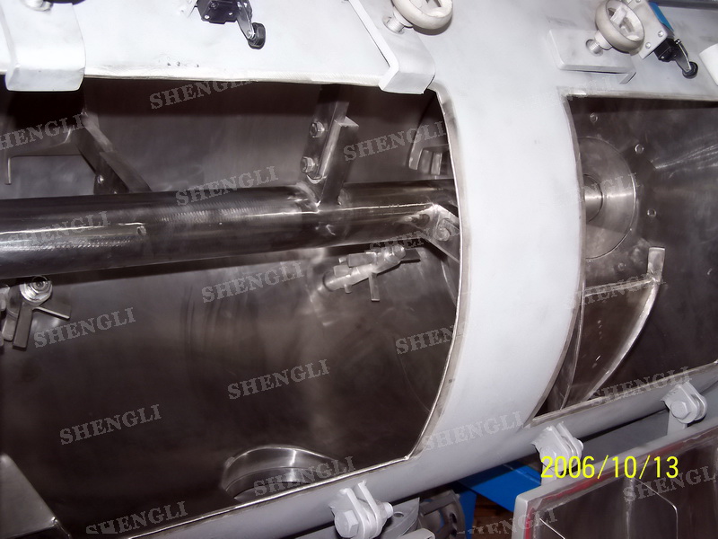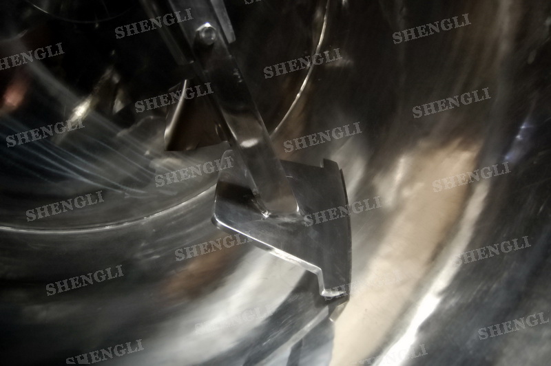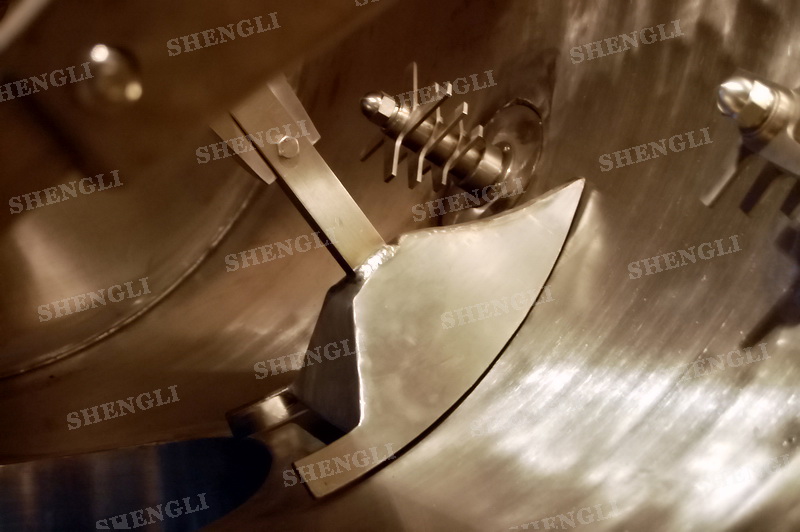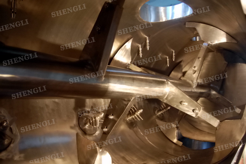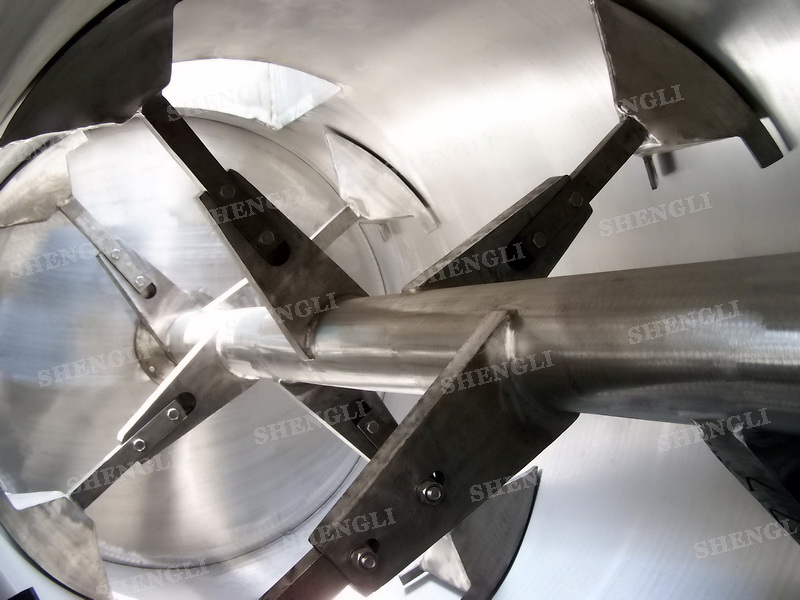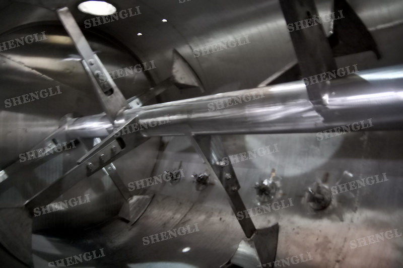 描述:犁刀混合機采用臥式圓柱筒體,內設平行主軸,主軸上安裝若干犁式刀頭,通過較快的旋轉速度,分割、重合物料,實現快速攪拌的功能,常結合1500-3000轉高速剪切飛刀相互作用。