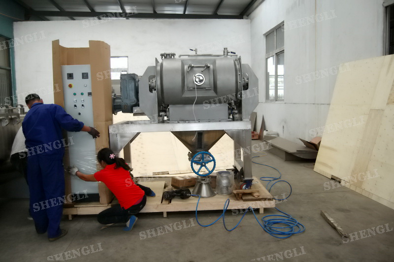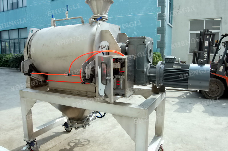 設(shè)備配置:配置F系列減速機(jī),平行安裝;筒體外設(shè)導(dǎo)熱介質(zhì)夾套;開設(shè)快開式檢修門;出料口采用氣動翻板閥;設(shè)備主軸采用氣密封;筒內(nèi)設(shè)加液噴頭;設(shè)備內(nèi)表面鏡面拋光、外表面噴砂亞光。