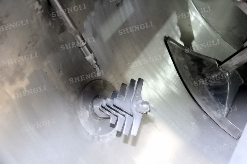 工作原理:臥式犁刀混合機(jī)采用臥式圓柱筒體,內(nèi)設(shè)平行主軸,主軸上安裝若干犁式刀頭,通過較快的旋轉(zhuǎn)速度,分割、重合物料,實(shí)現(xiàn)快速攪拌的功能,常結(jié)合1500-3000轉(zhuǎn)高速剪切飛刀相互作用。