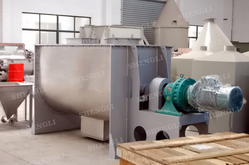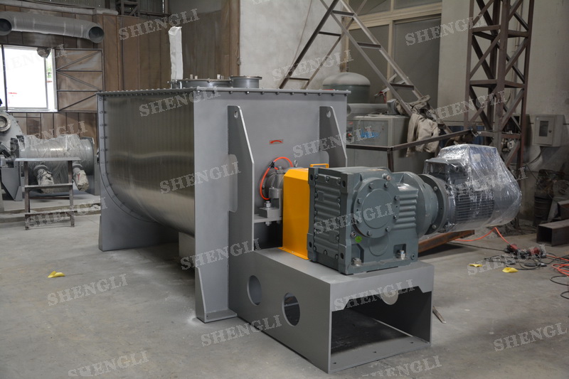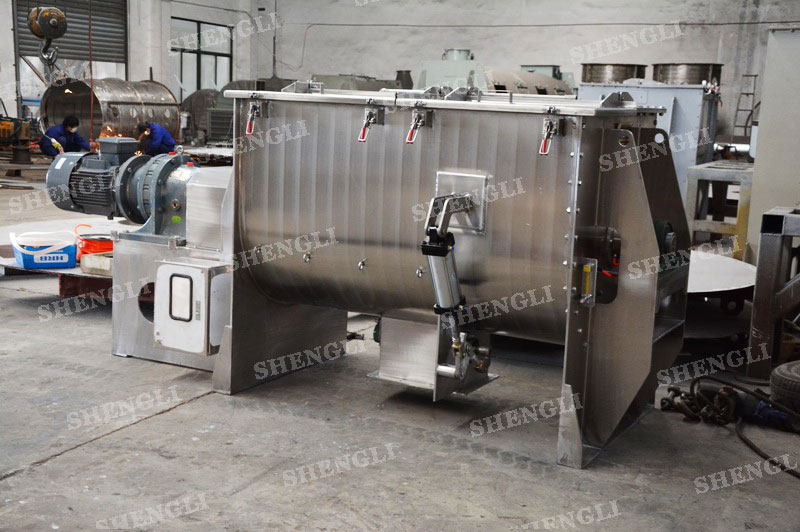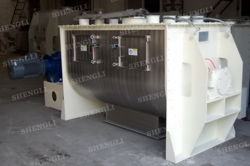 工作原理:螺帶混合機采用U型筒體,內裝平行主軸,主軸上安裝正反雙向的盤條螺帶,不同維度螺帶分內螺帶與外螺帶,物料在螺帶的驅使下反復參混,能夠快速高效的混合。