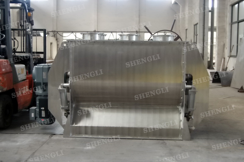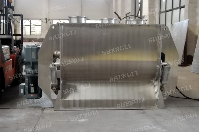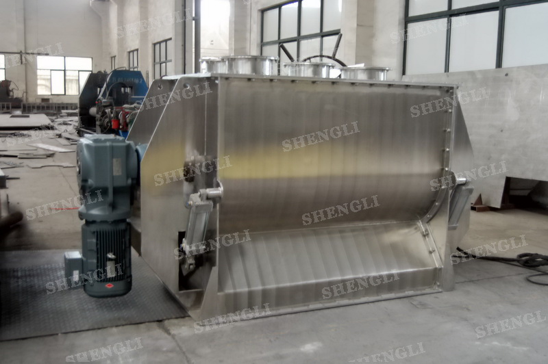 工作原理:螺帶攪拌機采用U型筒體,內裝平行主軸,主軸上安裝正反雙向的盤條螺帶,不同維度螺帶分內螺帶與外螺帶,物料在螺帶的驅使下反復參混,能夠快速高效的混合。