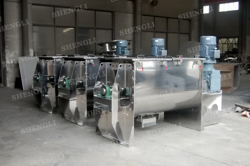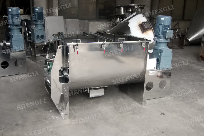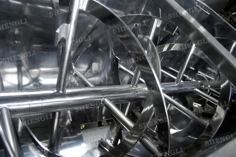 工作原理:螺帶臥式混合機采用U型筒體,內(nèi)裝平行主軸,主軸上安裝正反雙向的盤條螺帶,不同維度螺帶分內(nèi)螺帶與外螺帶,物料在螺帶的驅(qū)使下反復參混,能夠快速高效的混合。