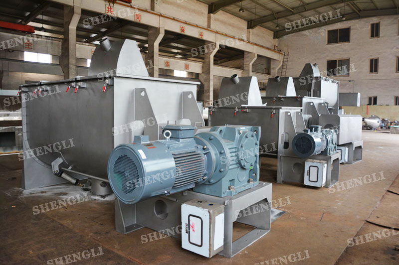 工作原理:螺帶臥式混合機采用U型筒體,內裝平行主軸,主軸上安裝正反雙向的盤條螺帶,不同維度螺帶分內螺帶與外螺帶,物料在螺帶的驅使下反復參混,能夠快速高效的混合。