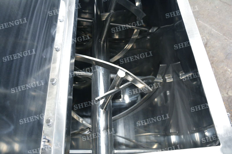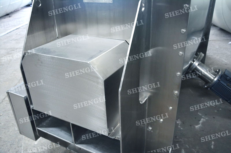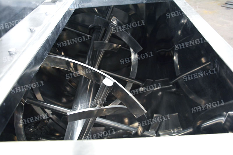 工作原理:螺帶混合設備采用U型筒體,內裝平行主軸,主軸上安裝正反雙向的盤條螺帶,不同維度螺帶分內螺帶與外螺帶,物料在螺帶的驅使下反復參混,能夠快速高效的混合。