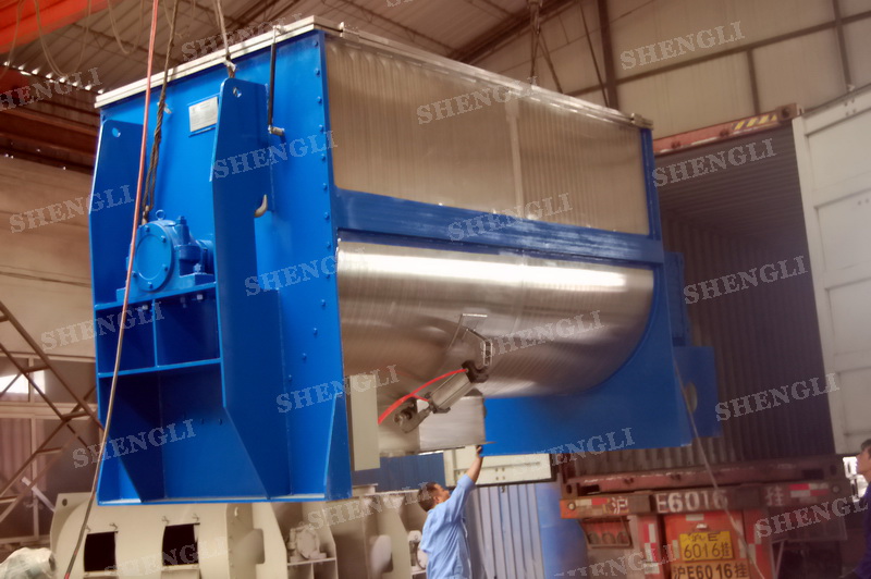工作原理:螺帶攪拌機采用U型筒體,內裝平行主軸,主軸上安裝正反雙向的盤條螺帶,不同維度螺帶分內螺帶與外螺帶,物料在螺帶的驅使下反復參混,能夠快速高效的混合。