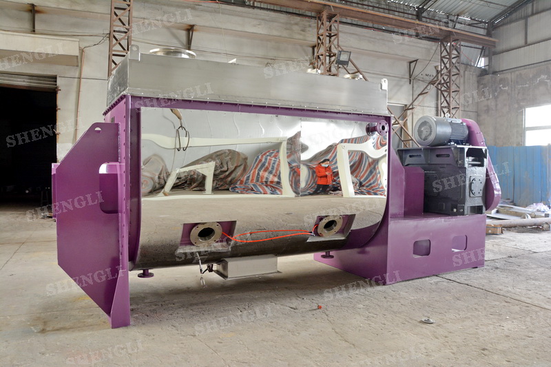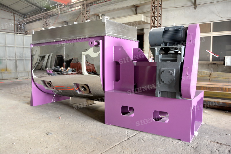 工作原理:螺帶臥式攪拌機采用U型筒體,內(nèi)裝平行主軸,主軸上安裝正反雙向的盤條螺帶,不同維度螺帶分內(nèi)螺帶與外螺帶,物料在螺帶的驅(qū)使下反復(fù)參混,能夠快速高效的混合。