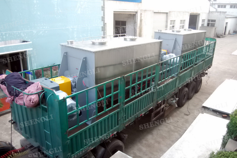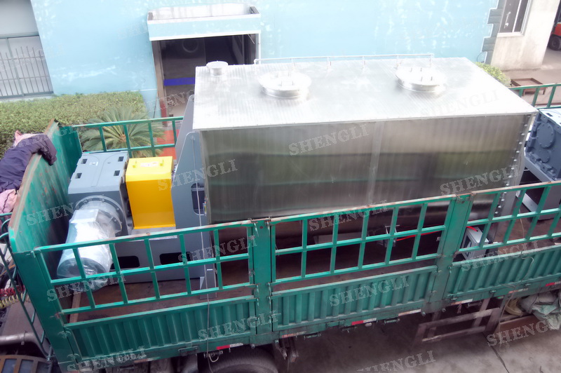 工作原理:螺帶攪拌設備采用U型筒體,內裝平行主軸,主軸上安裝正反雙向的盤條螺帶,不同維度螺帶分內螺帶與外螺帶,物料在螺帶的驅使下反復參混,能夠快速高效的混合。
