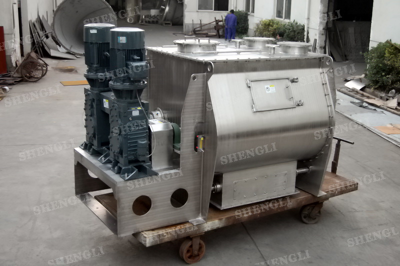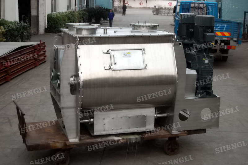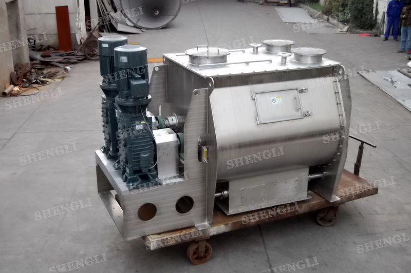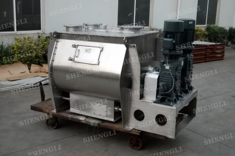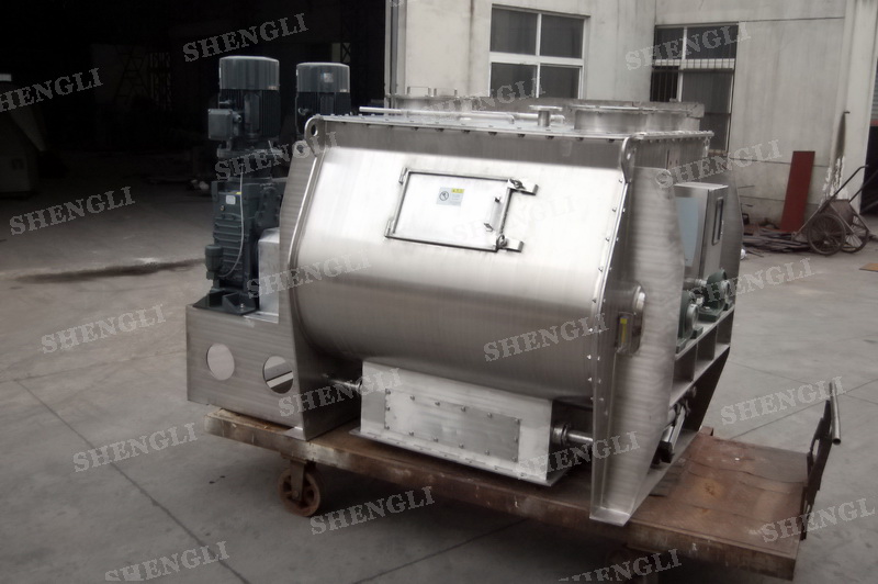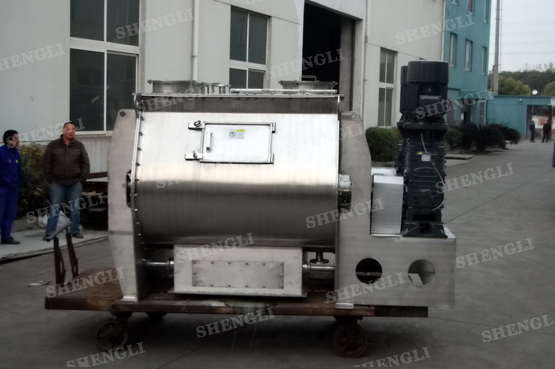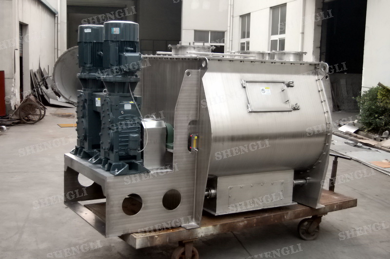 工作原理:無重力雙軸混合機采用雙U型筒體,內裝平行的雙主軸,主軸設有對稱的多組槳葉,其雙軸的運行軌跡部分重合形成嚙合空間,雙軸在受雙電機同步驅動,同步的對稱向外翻攪物料,致使物料能夠達到瞬間失重點,該設備具備高效物料無差別的混合能力。
