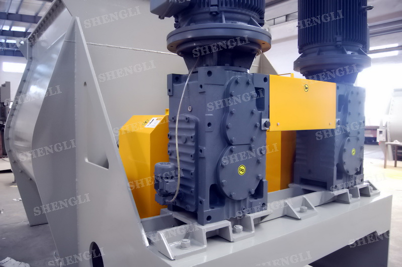 工作原理:臥式雙軸攪拌機采用雙U型筒體,內(nèi)裝平行的雙主軸,主軸設(shè)有對稱的多組槳葉,其雙軸的運行軌跡部分重合形成嚙合空間,雙軸在受雙電機同步驅(qū)動,同步的對稱向外翻攪物料,致使物料能夠達到瞬間失重點,該設(shè)備具備高效物料無差別的混合能力。